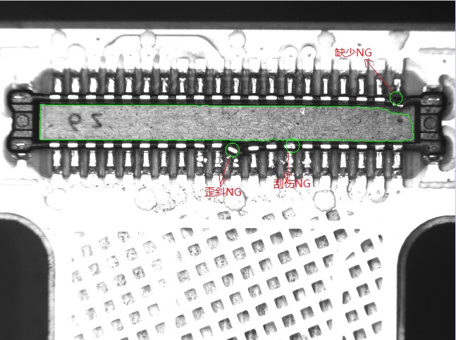 本方案采用两个固定相机,一个拍摄正面、一个拍摄侧面,以目前图像效果来看,可以检测缺焊、连焊等不良。