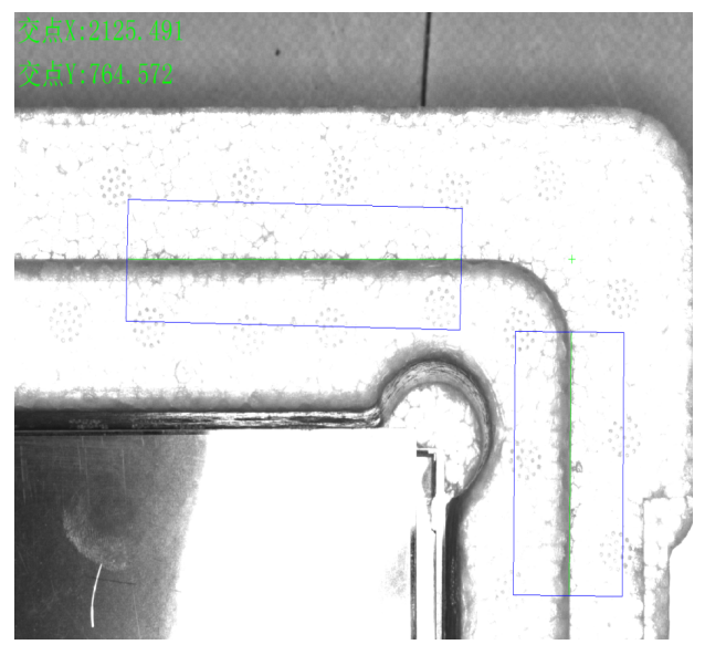 1.泡沫外壳检测:通过四个角的4套CCD检测出来外壳的四条边,可以得到对角线的交点,即为外壳的中心抓取点