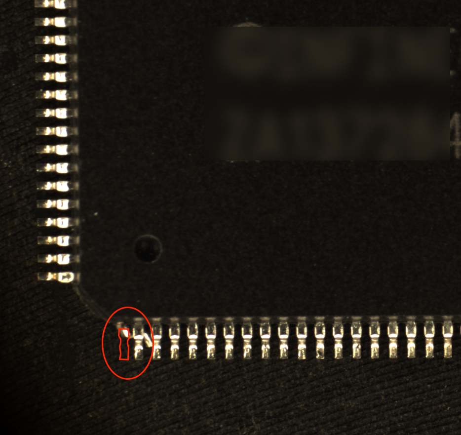 康耐德智能针对芯片四周pin针缺失、歪斜等缺陷已推出多款成熟的视觉检测系统,具备高精度、高速度、可集成等特性,适用于自动化产线实时检测。