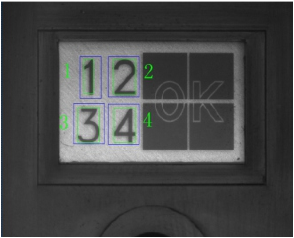 使用康耐德机器视觉aoi检测系统的字符集合工具,字符读取工具组合使用可以读取字符和数字特征,也可以把读取结果,输出与设定值对比。