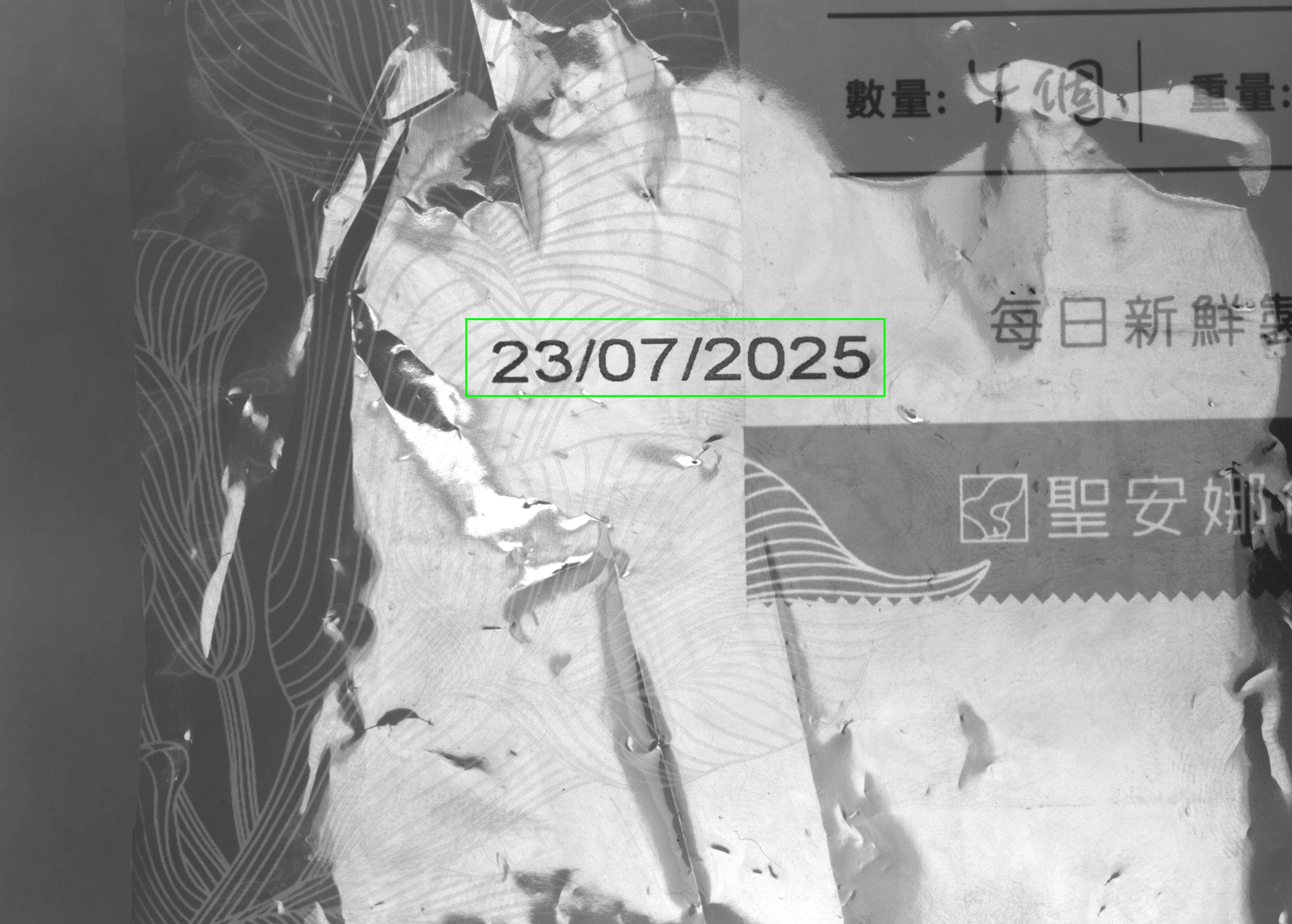 食品包装袋上的生产日期、保质期等信息是保障食品安全和实现产品追溯的关键。然而,在实际生产过程中,由于喷码设备、环境或人为因素,常出现漏码、错码、歪码、模糊、位置偏移等问题。